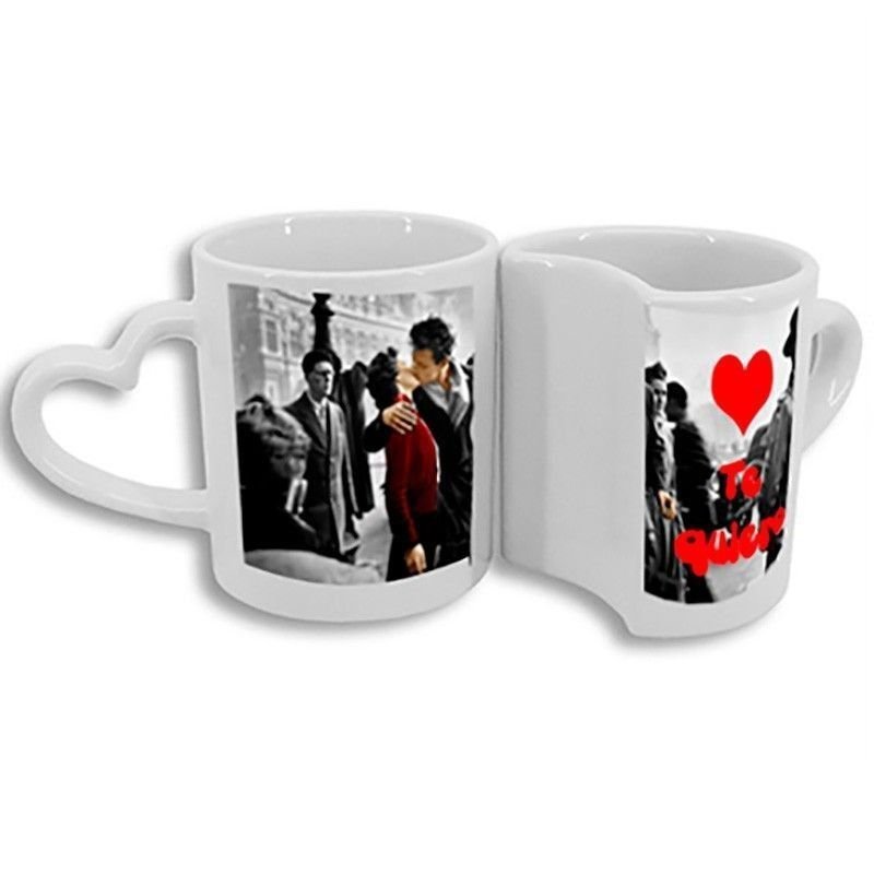 Taza personalizada con fotos duo corazón: Taza de cerámica con diseño de corazón que permite personalizar con dos fotos diferentes. Ideal para regalar en ocasiones especiales y expresar amor y cariño de forma única y original. ¡Un regalo perfecto para sorprender a tus seres queridos!